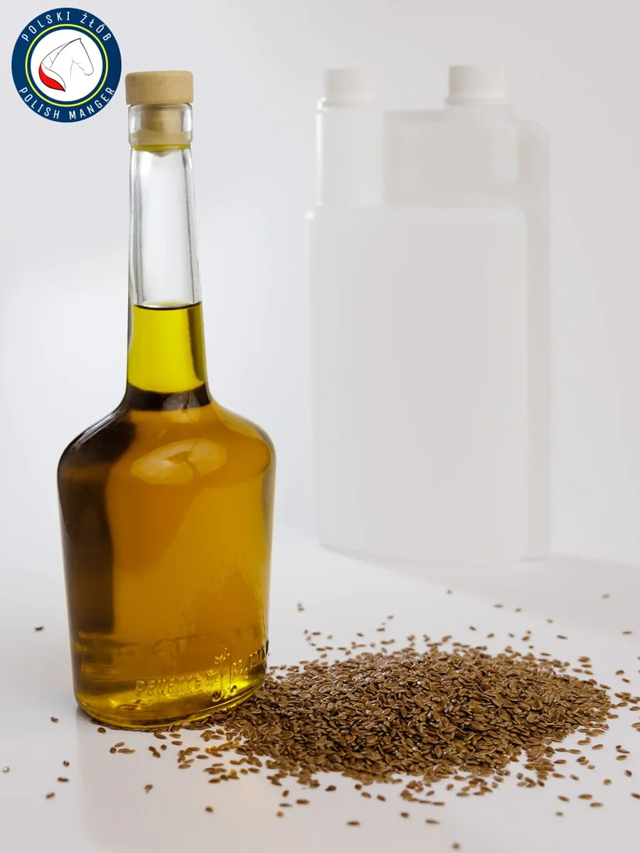 Źródło kwasów Omega-3 i Omega-6. Tłoczony na zimno. Bez konserwantów. Opakowanie 1litr z wygodnym dozownikiem