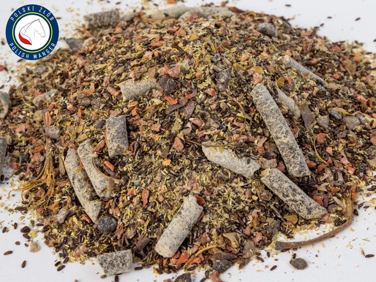 - W przypadku biegunek lub wody kałowej mieszankę należy podawać na sucho. W przypadku kolek i zaparć na mokro w formie meszu. W trakcie odpiaszczania należy zapewnić koniom stały dostęp do czystej wody.