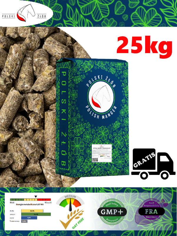 Polecana dla koni jako zamiennik owsa bądź dodatek do codziennego karmienia. Zawiera niski udział melasy. Można podawać po namoczeniu. Granulat podstawowy dla koni na każdy dzień.
